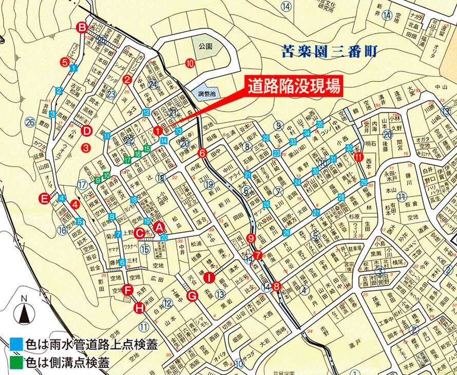 2010年7月20日午前11時頃、道路陥没事故発生(組合費20万円で補修完了)